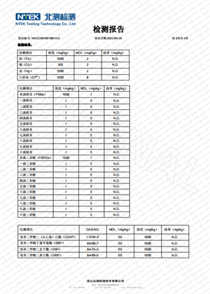 Test conditions: apply force 50N, speed 25.40mm min, test criteria: no cracks in the product.
